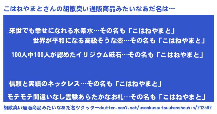 | 伝説のあだ名 | 『人々から恐れられる占い師こはねやまと』 |