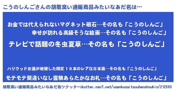 | 意味不明あだ名 | 『自称こうのしんご』 |