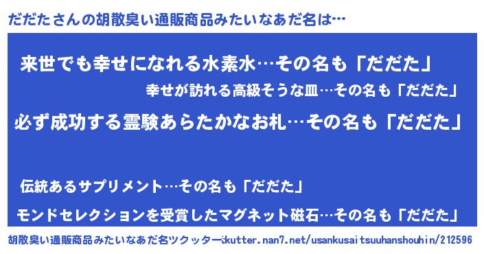 | 男性向けラノベタイトル風あだ名 | 『ダダタスレイヤー』『だだたの憂鬱』 |