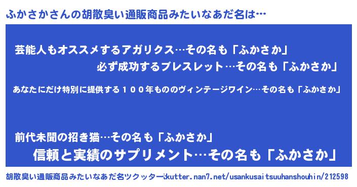 | 意味不明あだ名 | 『住所不定無職ふかさか(2歳)』 |