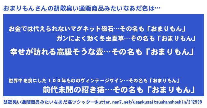 | 男性向けラノベタイトル風あだ名 | 『やはりおまりもんの青春ラブコメはまちがっている 』 |