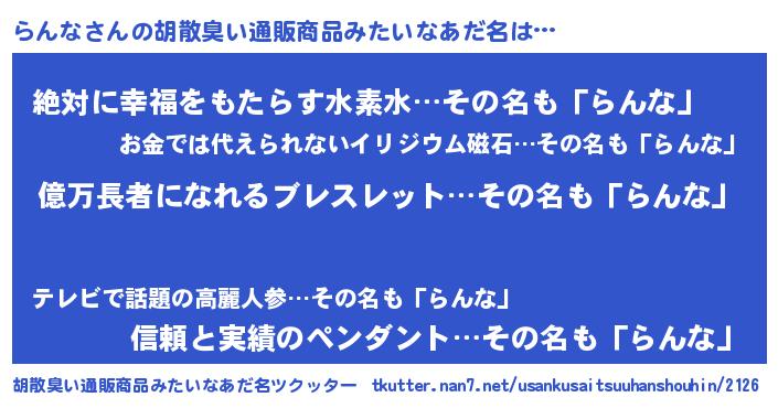 | 意味不明あだ名 | 『ペロリンらんな』『永久保存らんな』 |
