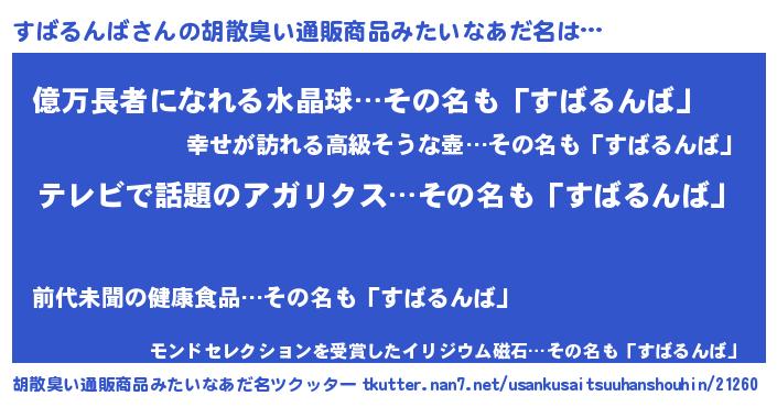 | ヘコむあだ名 | 『すばにゅー』『酢こんぶ』 |