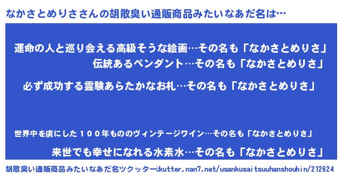 | 伝説のあだ名 | 『伝説のスナイパーなかさとめりさ』 |