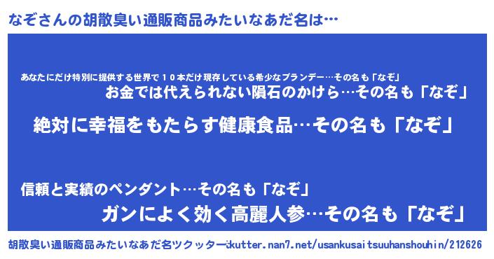 | 欧米人風あだ名 | 『ダルビッシュなぞ』『ダレノガレなぞ』 |