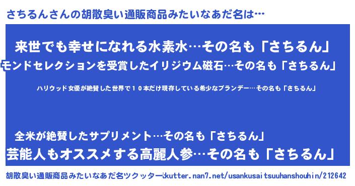 | 意味不明あだ名 | 『住所不定無職さちるん(77歳)』 |