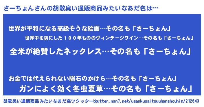 | 肩書あだ名 | 『さーちょん塾長』『さーちょん中佐』 |