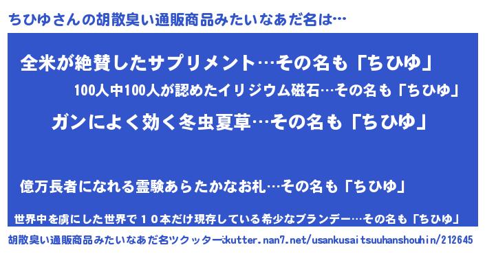 | 意味不明あだ名 | 『自称ちひゆ』『とにかく怪しいちひゆ』 |