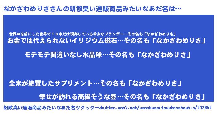 | 男性向けラノベタイトル風あだ名 | 『ナカザワメリサアートオンライン』 |