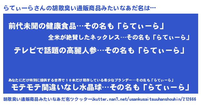 | 恥ずかしいあだ名 | 『ラティーラデラックス』『らてちん』 |