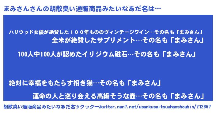 | ヘコむあだ名 | 『つくし』『まみを』『まみっふぃ~』 |