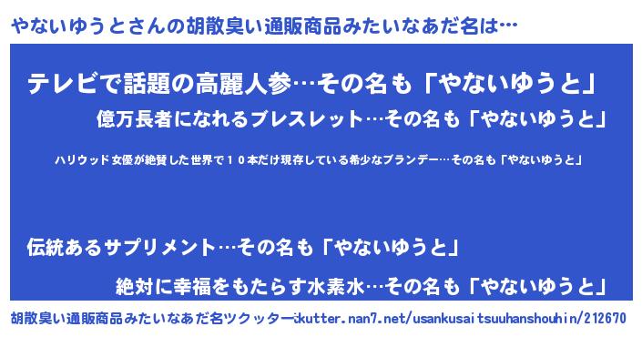 | 意味不明あだ名 | 『住所不定無職やないゆうと(81歳)』 |