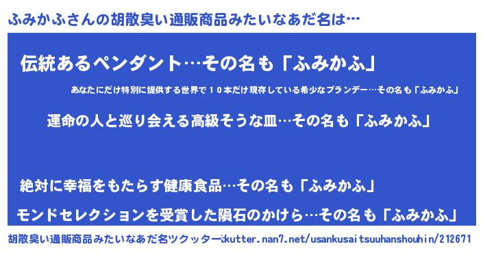 | ポケモン風あだ名 | 『フミカダネ』『ヒフミカフ』 |