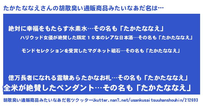 | ヒーロー風カッコイイあだ名 | 『天空の使者たかたななえ』 |