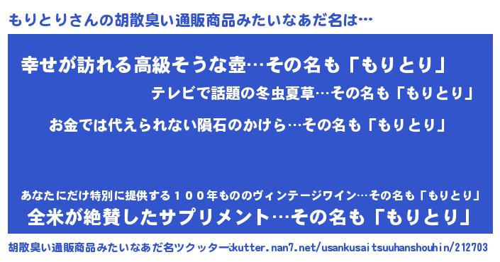 | ヘコむあだ名 | 『豆乳』『もりを』『もりとり(笑)』 |