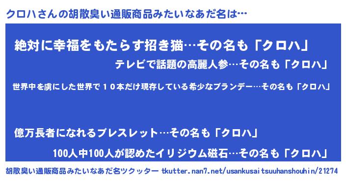 | 意味不明あだ名 | 『住所不定無職クロハ(79歳)』『自称クロハ』 |