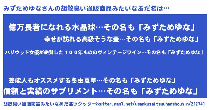 | 意味不明あだ名 | 『住所不定無職みずためゆな(5歳)』 |