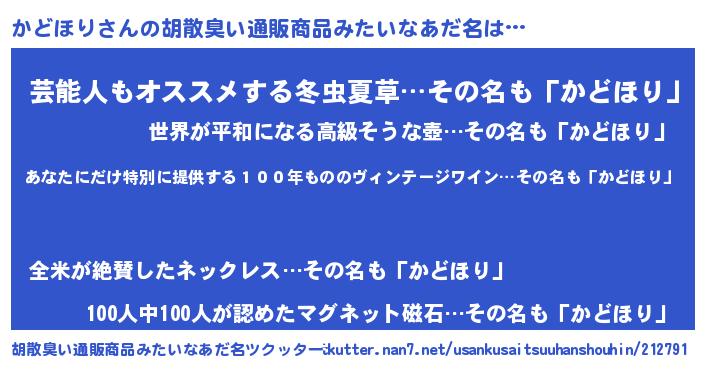 | 意味不明あだ名 | 『住所不定無職かどほり(11歳)』 |