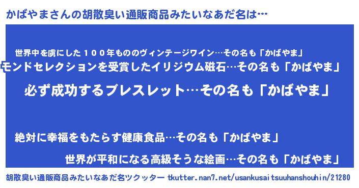 | 男性向けラノベタイトル風あだ名 | 『かばやまの憂鬱』 |