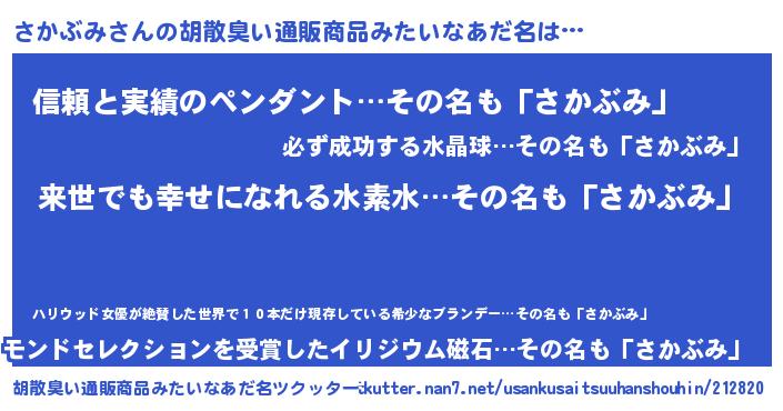 | 男性向けラノベタイトル風あだ名 | 『さかぶみという概念が存在しない退屈な世界 』 |