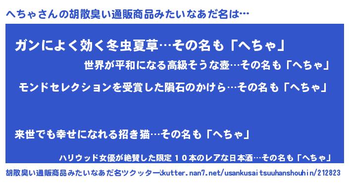 | 意味不明あだ名 | 『眠気覚ましガムへちゃ味』『自称へちゃ』 |
