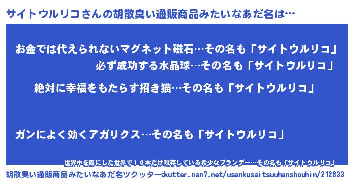 | 意味不明あだ名 | 『永久保存サイトウルリコ』 |