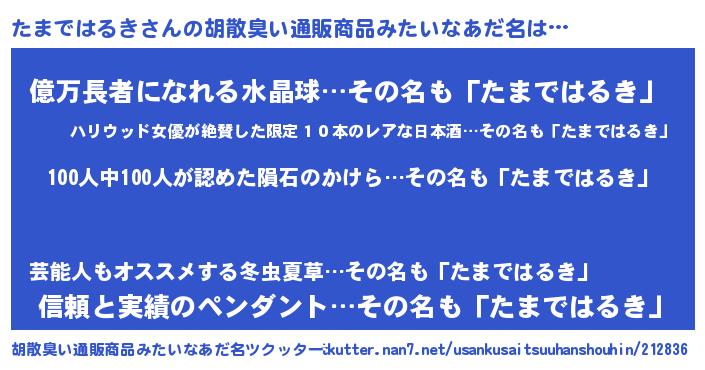 | ヘコむあだ名 | 『たまっふぃ~』『たま太郎』『牛乳』 |