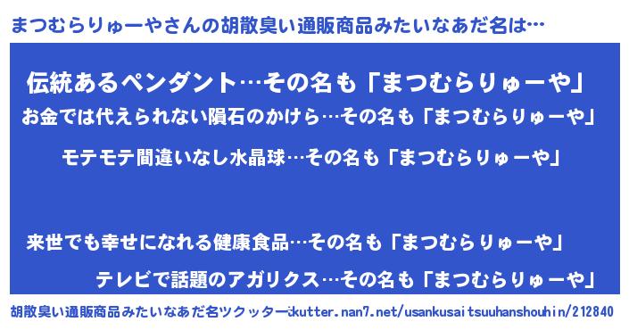 | 肩書あだ名 | 『まつむらりゅーや店長』 |
