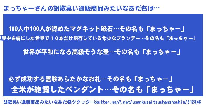 | ヘコむあだ名 | 『なまこ酢』『まっを』『まっにゅー』 |