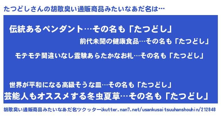 | 恥ずかしいあだ名 | 『プリティーたつどし』『タツリンリン』 |