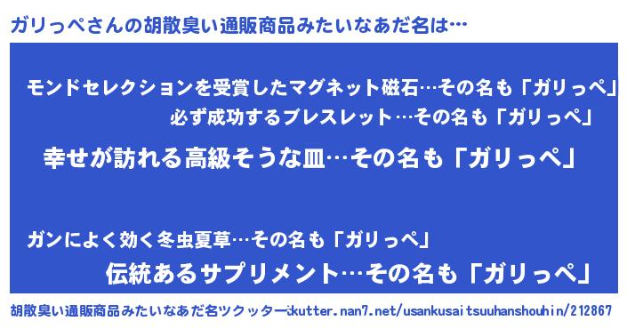 | ポケモン風あだ名 | 『メロガッリ』『ガリゴンZ』 |