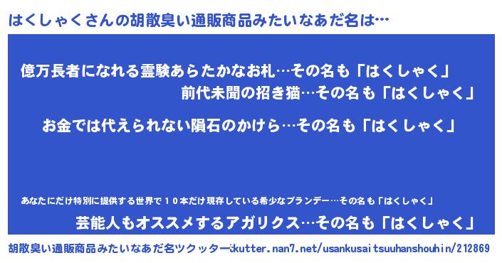| ヘコむあだ名 | 『はくっふぃ~』『はくしゃく(苦笑)』 |