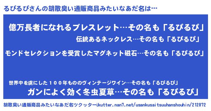 | ヘコむあだ名 | 『るぴふぇ~』『るぴを』『牛乳』 |