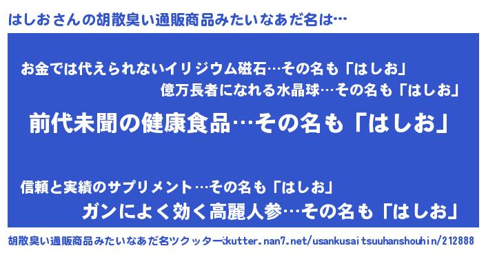 | ヒーロー風カッコイイあだ名 | 『ネオハシオ』『慈愛の使者はしお』 |