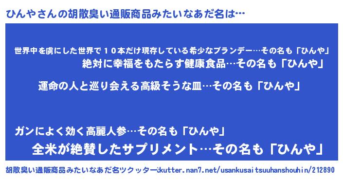 | 女子向けラノベタイトル風あだ名 | 『ひんやの婚約者』『ひんやは平凡を望む』 |