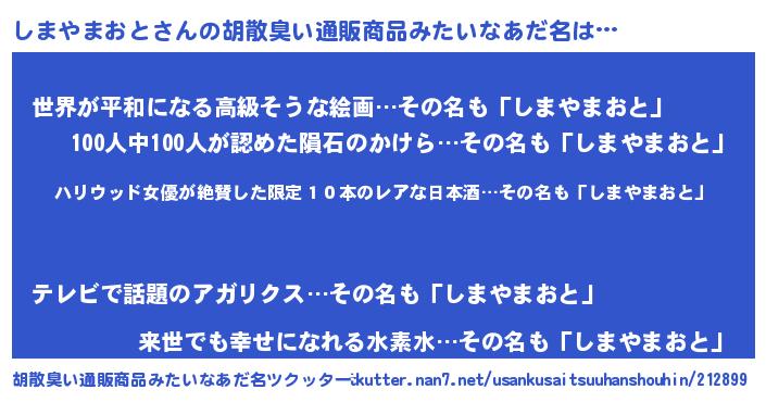 | 意味不明あだ名 | 『住所不定無職しまやまおと(40歳)』 |