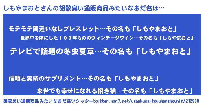 | 意味不明あだ名 | 『自称しもやまおと』 |