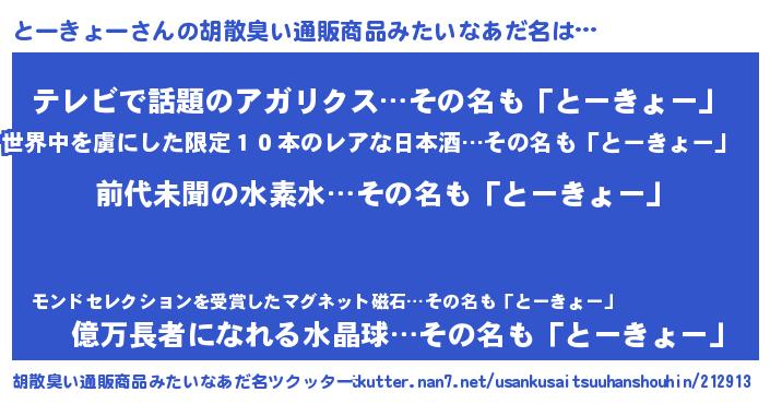 | 意味不明あだ名 | 『永久保存とーきょー』『自称とーきょー』 |