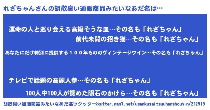 | 男性向けラノベタイトル風あだ名 | 『れざちゃん~年齢イコール彼女いない歴の魔法使い~』 |