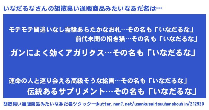 | 女子向けラノベタイトル風あだ名 | 『いなだるななんてお断りですっ。』 |