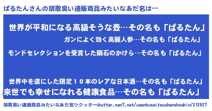 | ヘコむあだ名 | 『酢こんぶ』『ぱるたん(爆)』 |