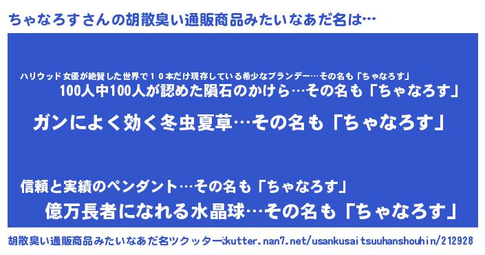 | 女子向けラノベタイトル風あだ名 | 『ちゃなろすなんてお断りですっ。』 |