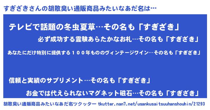 | ヘコむあだ名 | 『すぎにー』『すぎっぺ』『なまこ酢』 |