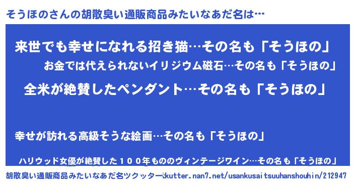 そうほのさんの胡散臭い通販商品みたいなあだ名をツクッター!