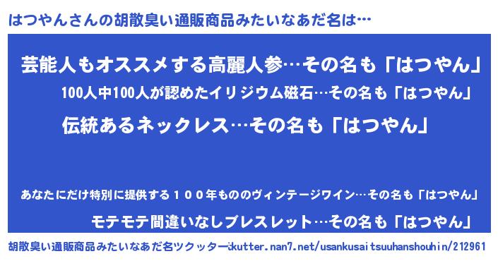 はつやんさんの胡散臭い通販商品みたいなあだ名をツクッター!
