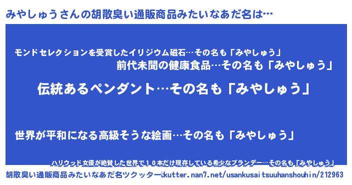 | 意味不明あだ名 | 『とにかく怪しいみやしゅう』 |