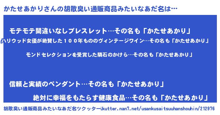 | ヘコむあだ名 | 『かたもー』『かたせあかり(笑)』 |