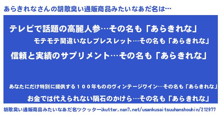 | 料理風あだ名 | 『あらきれなの豆乳スープ』 |