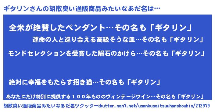 | ヘコむあだ名 | 『ギタぷりん』『酢こんぶ』 |