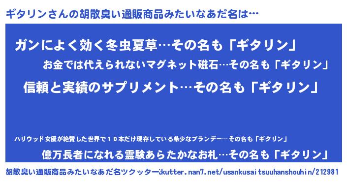 | ピコ太郎風あだ名 | 『ギタ三郎』『ギコ八郎』『ギギ太郎』 |